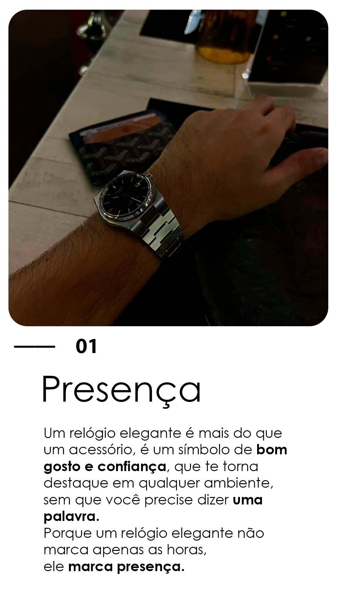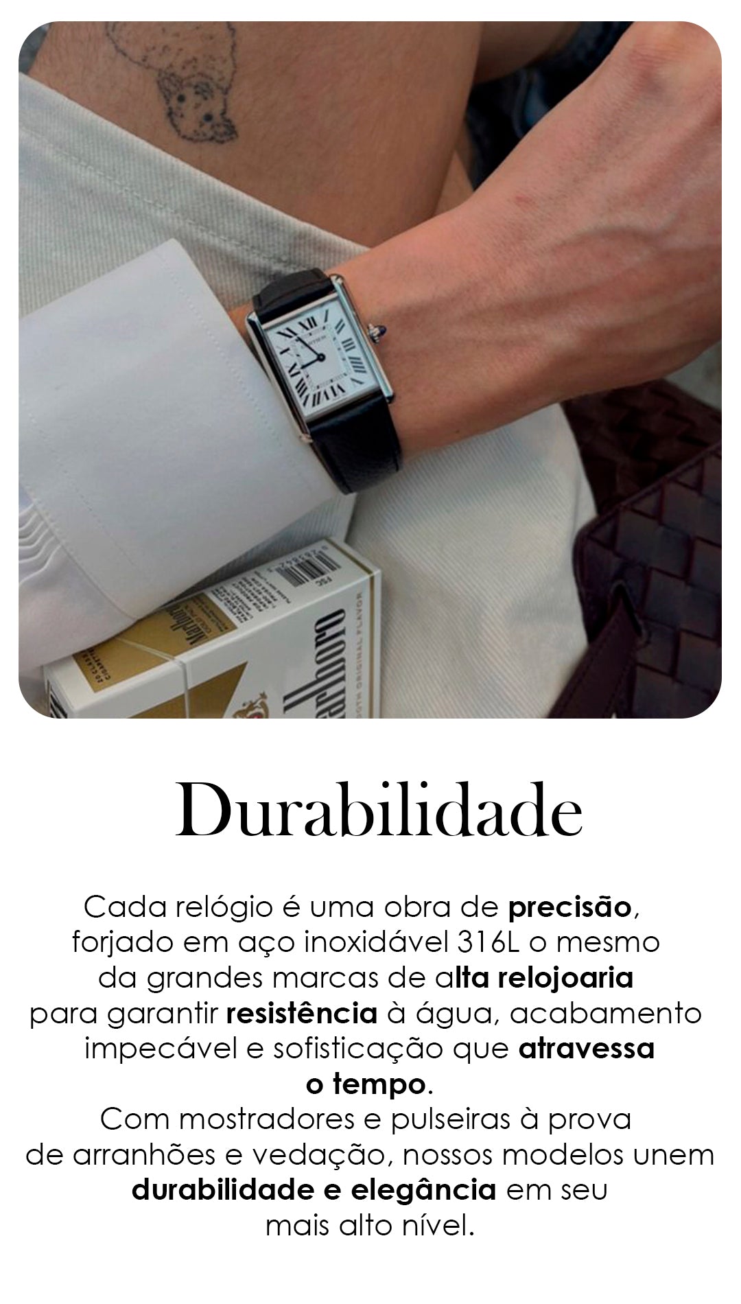O relógio entrega uma qualidade e design impecáveis por um preço muito justo. Estou satisfeito com o custo-benefício. Recomendo!
